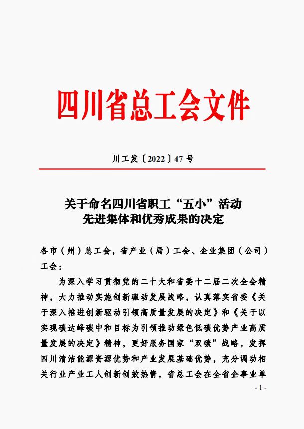 在集團(tuán)上下深入學(xué)習(xí)貫徹黨的二十大和省委十二屆二次全會(huì)精神之際,希望廣大職工繼續(xù)以先進(jìn)為榜樣,充分調(diào)動(dòng)創(chuàng)新創(chuàng)效熱情,立足本職崗位,關(guān)心集團(tuán)發(fā)展,開拓進(jìn)取,勇于創(chuàng)新,在四川水利高質(zhì)量發(fā)展進(jìn)程中動(dòng)腦筋,想辦法,發(fā)揮聰明才智,為增強(qiáng)企業(yè)核心競爭力,助力全省“拼經(jīng)濟(jì)、搞建設(shè)、促發(fā)展”貢獻(xiàn)水發(fā)集團(tuán)產(chǎn)業(yè)工人力量。